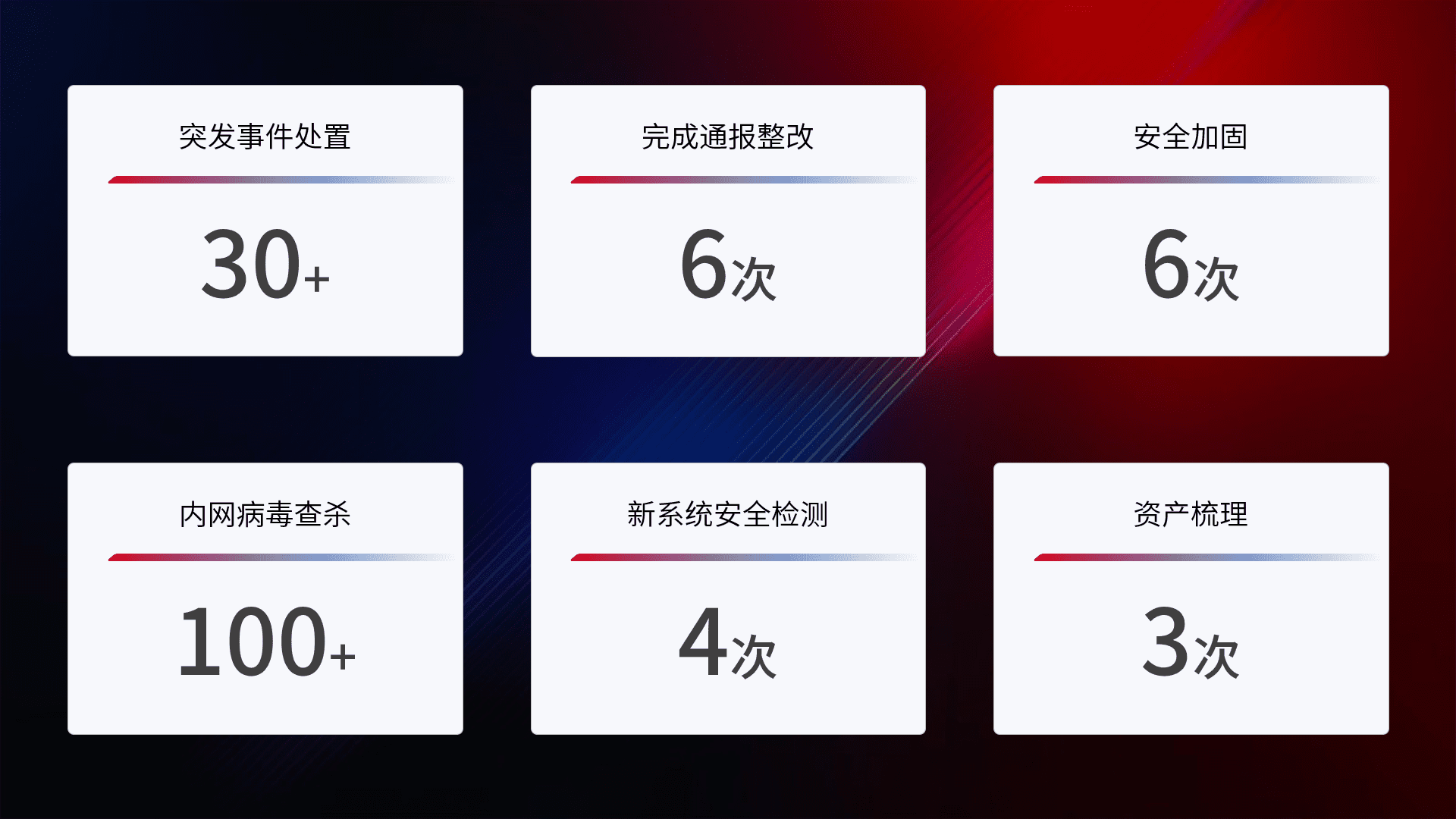 网络安全加固与风险管理:通过技术加固手段,,如加强区域隔离,,,,缩减攻击内网横向移动的范围;优化现有网络安全管理制度,,,,降低网络威胁暴露面,,,减少被黑客攻击的可能性。。。。